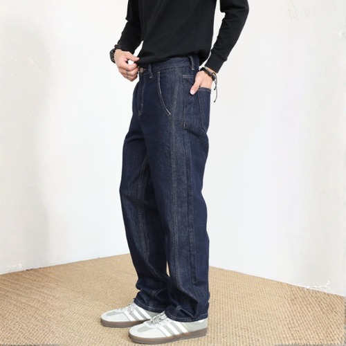 Low collar loose fit long denimパンツ A1982