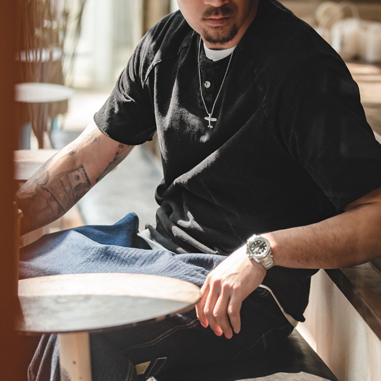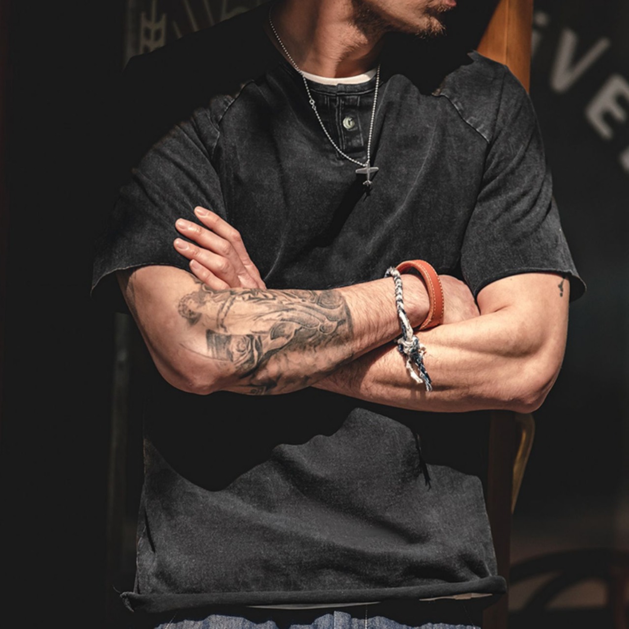 アメリカン レトロ ヘビー コットン ヘンリー シャツ A0114